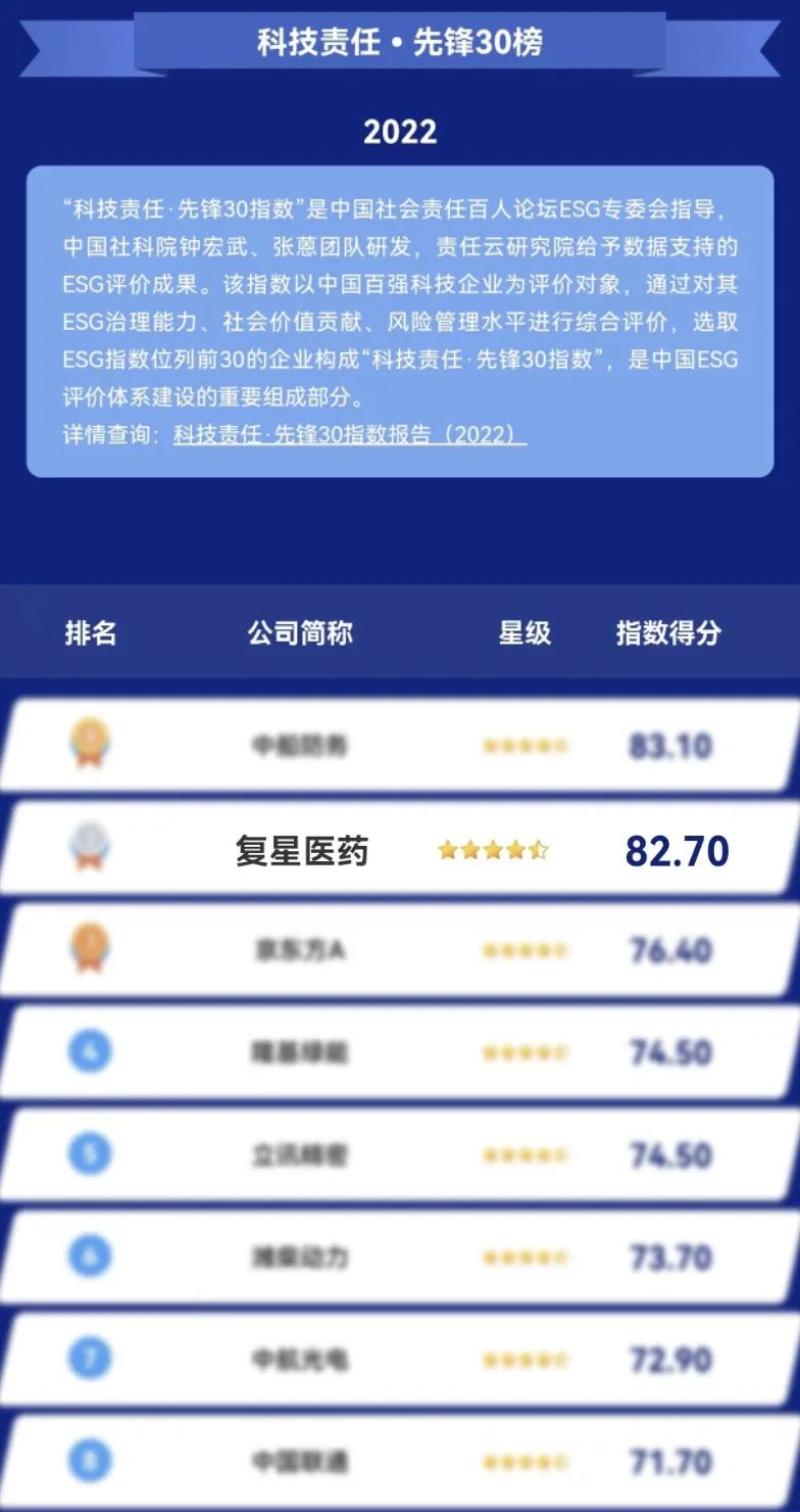 HJC黄金城医药入选2022年“科技责任·先锋30指数”