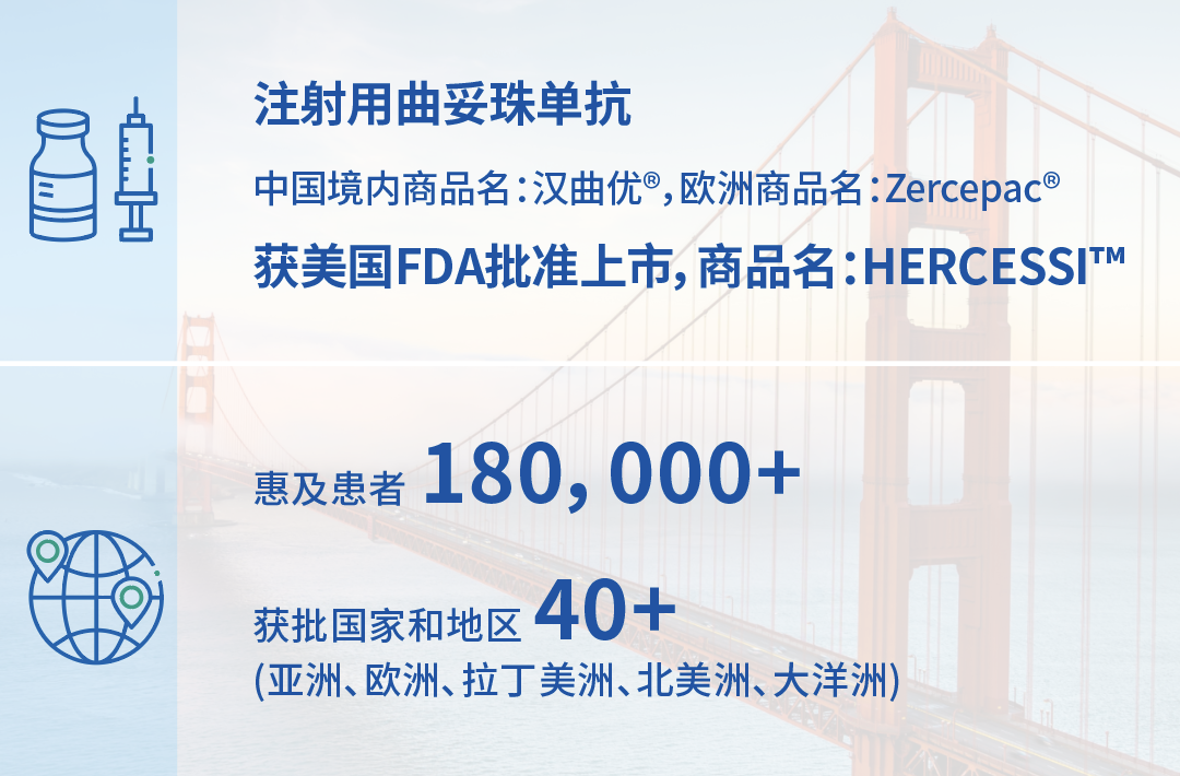 HJC黄金城医药自主研发的创新产品出海再有突破。2024年4月,注射用曲妥珠单抗(中国境内商品名:汉曲优)获美国FDA批准上市,用于辅助治疗HER2过表达乳腺癌、治疗HER2过表达转移性乳腺癌、以及治疗HER2过表达转移性胃腺癌或胃食管交界腺癌,成为首个在中国、欧盟、美国获批的国产生物类似药。截至目前,汉曲优现已在全球40余个国家和地区获批上市,惠及逾18万全球患者。