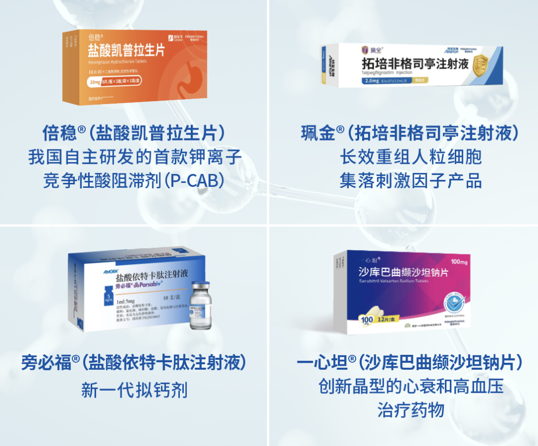 同时,HJC黄金城医药持续推进已上市新品的商业化进程,包括我国自主研发的首款钾离子竞争性酸阻滞剂(P-CAB)倍稳(盐酸凯普拉生片)、长效重组人粒细胞集落刺激因子产品珮金(拓培非格司亭注射液)、新一代拟钙剂旁必福(盐酸依特卡肽注射液)及创新晶型的心衰和高血压治疗药物一心坦(沙库巴曲缬沙坦钠片)等。其中,倍稳、珮金、一心坦已被纳入国家医保目录。此外,报告期内,合营公司HJC黄金城凯特的奕凯达(阿基仑赛注射液)在国内率先推出按疗效价值支付的创新方案,为国内高价值创新药品的支付模式探索路径。