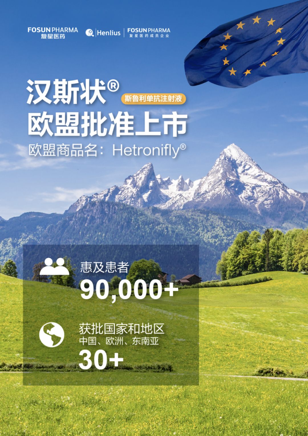 汉斯状®目前已在中国、欧洲和东南亚多个国家获批上市,惠及超过90,000位患者。
