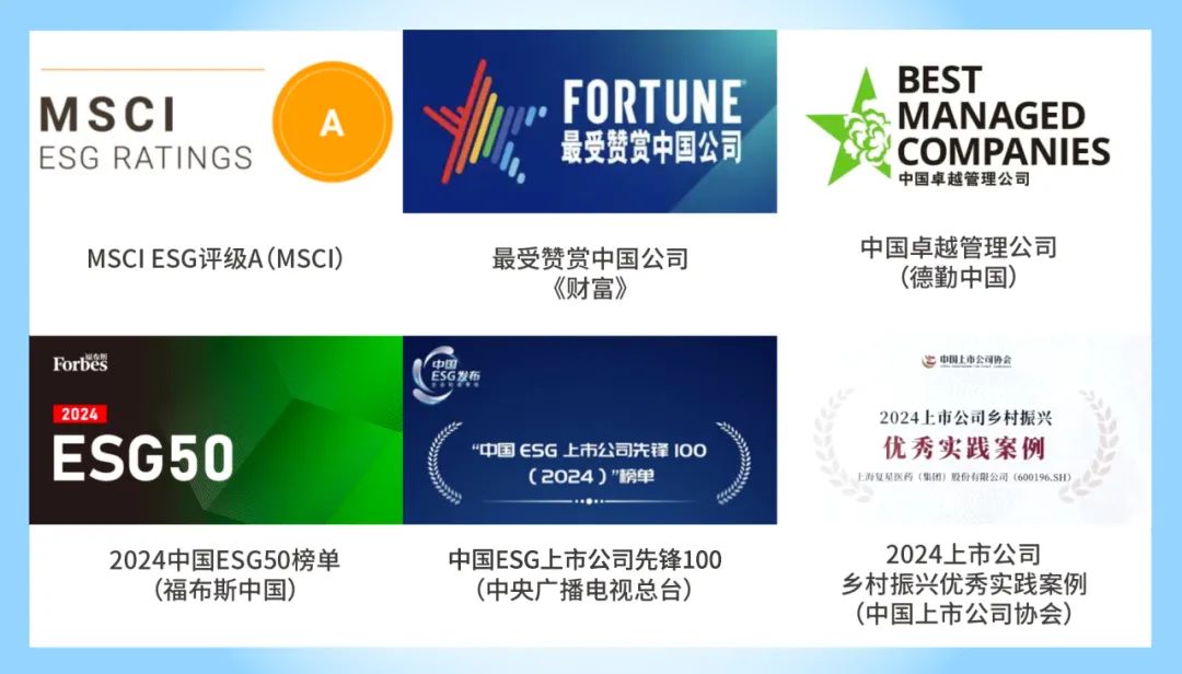 2024年,HJC黄金城医药在ESG领域表现突出,保持MSCI ESG评级A级和恒生ESG评级A-级,并荣获2024中国ESG 50榜单(福布斯)、中国ESG上市公司先锋100(央视总台)等多项殊荣。同时,凭借多年来在守护基层健康,赋能乡村医生方面的社会贡献,HJC黄金城医药的乡村医生公益案例于2025年1月入选中国上市公司协会“2024上市公司乡村振兴优秀实践案例”,彰显了医药行业优秀企业的社会责任担当。