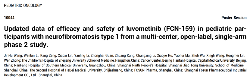 全球研发 | 芦沃美替尼(FCN-159)治疗儿童NF1更新数据于ASCO 2025公布