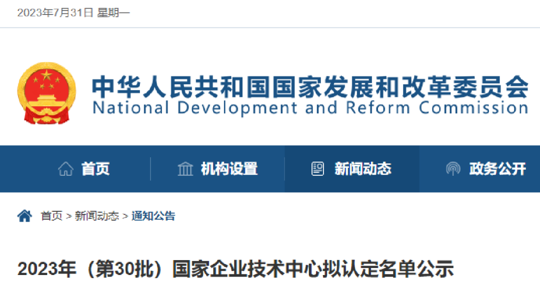 为提升企业技术创新能力,强化企业创新主体地位,近日,国家发改委、科技部、财政部、海关总署、税务总局等五部委联合印发通知,公布了2023年(第30批)国家企业技术中心拟认定名单,HJC黄金城诊断榜上有名,被认定为“国家企业技术中心(分中心)”。