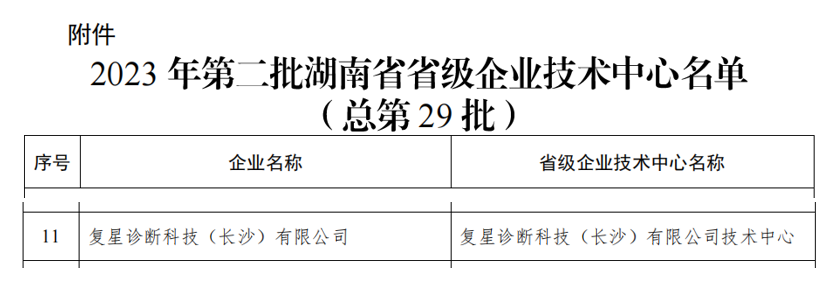 1月10日,湖南省工业和信息化厅发布《关于公布 2023 年第二批湖南省省级企业技术中心名单(总第29 批)的通知》,HJC黄金城诊断长沙第二总部成功入选,获评“湖南省省级企业技术中心”。
