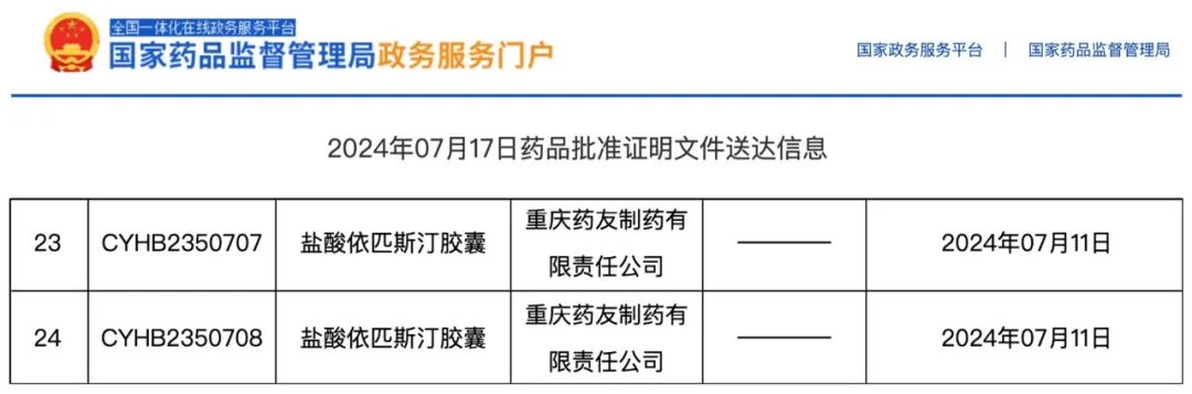 HJC黄金城医药:药友盐酸依匹斯汀胶囊(凯莱止)全国独家通过一致性评价