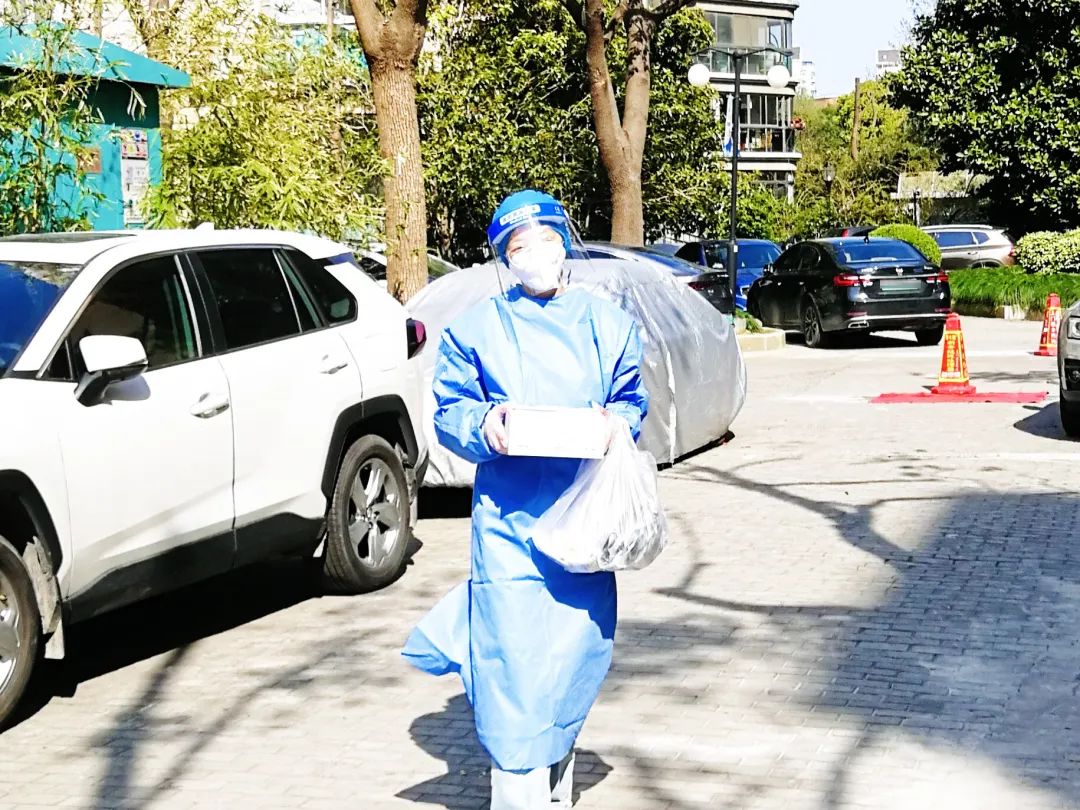 临床医学研发部的钟诗琦在一次挨家挨户派发抗原的工作完成后,加入了运送外卖快递的队伍。面对一个个大包裹,第一次参与运送的她正犯难时,另一位志愿者推着一辆空购物车出现了。大家会心一笑,把待发送的包裹放入消毒过的车内,按照楼栋分布整理好,提高了上门送货的效率。结识了这样一群靠谱的队友,收获了居民们真诚的感谢,让她分外暖心。