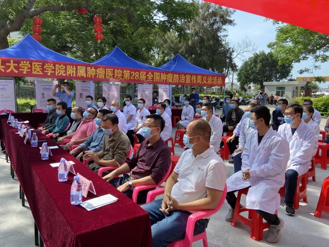 22日上午,汕头市医学会林纯良会长、汕头大学医学院附属肿瘤医院邱卫黎副院长、南澳县卫健局郑楚雄局长、南澳县医共体总医院张苏伟院长、云澳镇蔡书孝委员等相关领导出席活动,汕大医学院附属肿瘤医院郭海鹏主任主持活动,相关科室专家、医护人员和就诊群众共100余人参加。