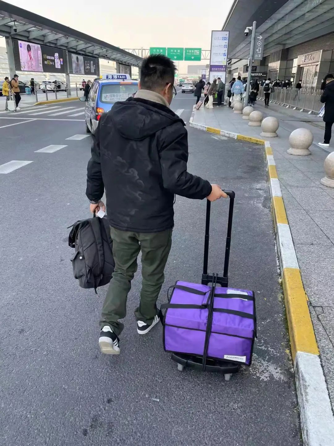 庄师傅携冷链箱去高铁站