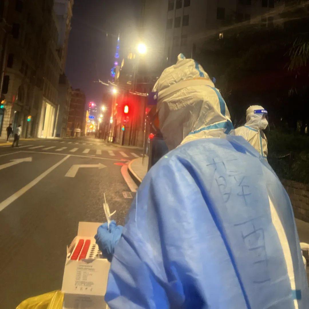 记得在四月初核酸采样量最大的几天,我所在的小组最早凌晨4点就要出发来到小区做准备工作,最晚的时候要半夜2点才结束任务回到驻地酒店。