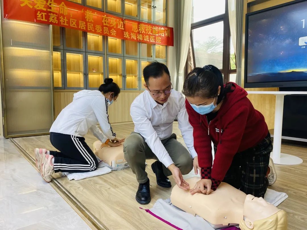 为了优化救治流程和提高成效,冯荣宗带领医院与珠海市香洲区人民医院胸痛中心共建“胸痛救治单元”,同时挂牌珠海市香洲区民营医疗机构首个急救体验实践基地,亲自走进社区、厂企进行60余场免费科普,手把手为市民教授心肺复苏术、窒息处理等急救技能,得到广大群众的热烈欢迎和好评。