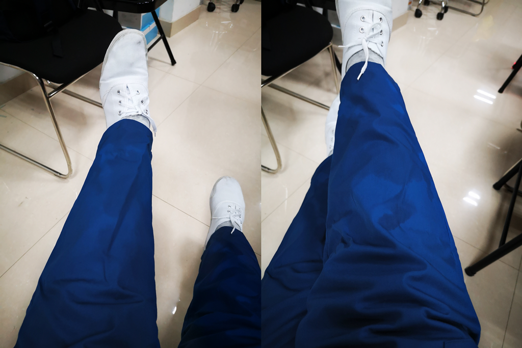 被汗水浸湿的长裤
