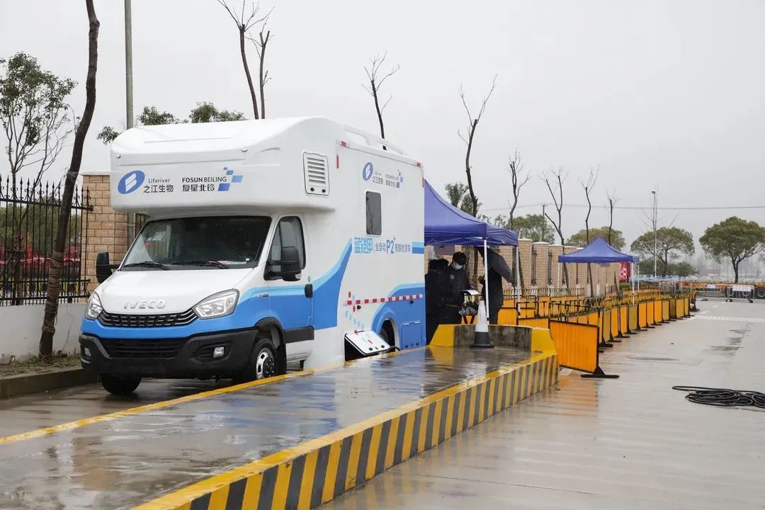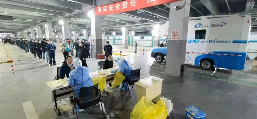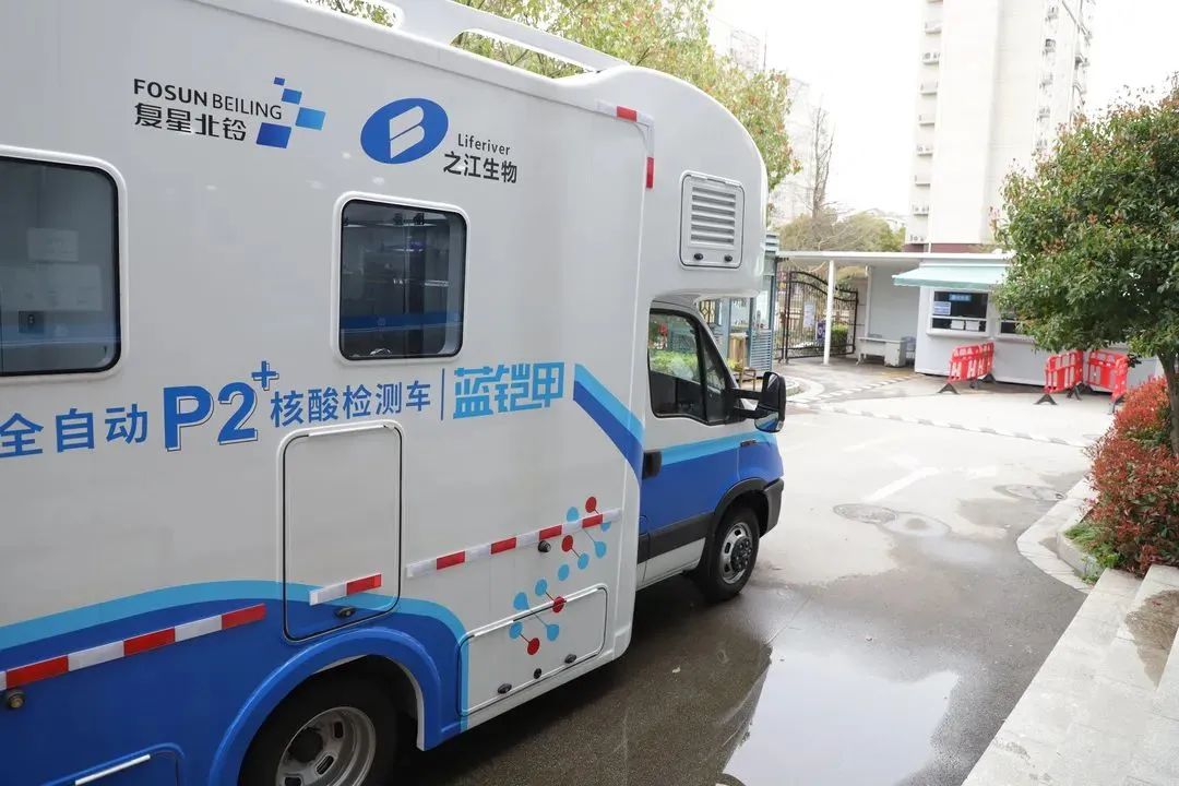 即停即检、采检一体自动化的移动核酸检测车“蓝铠甲”开进浦江镇,市民在车辆后方完成核酸采样后,样本会在车辆当中使用全自动化设备完成核酸检测,极大的缩短运转样本和检测时间,提高检测效率,让所有人能够在3~5小时内拿到报告,助力上海复工复产。