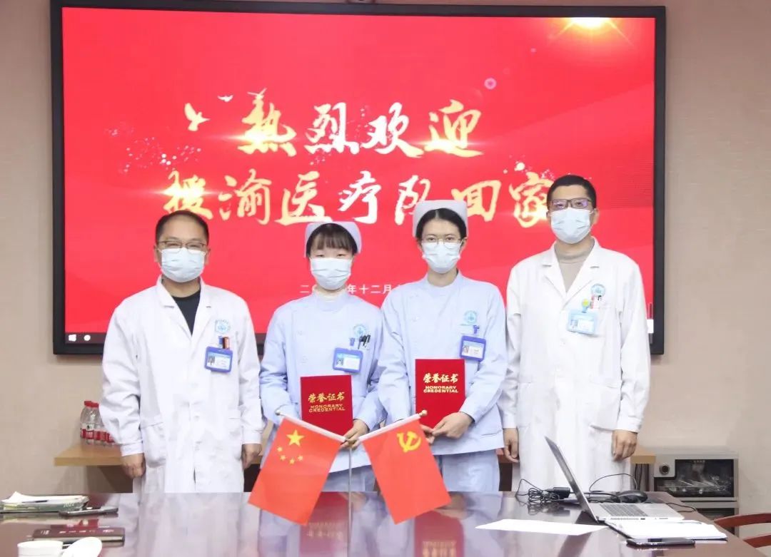 为欢迎安徽济民肿瘤医院援渝医疗队平安凯旋,12月14日下午,医院为肿瘤外科胡杰娇、肿瘤内二科曹晓晨两位抗疫同志举行了欢迎仪式。院领导班子及医院中层干部出席欢迎仪式。副院长满祎、徐玉良为两名抗疫英雄颁发荣誉证书。