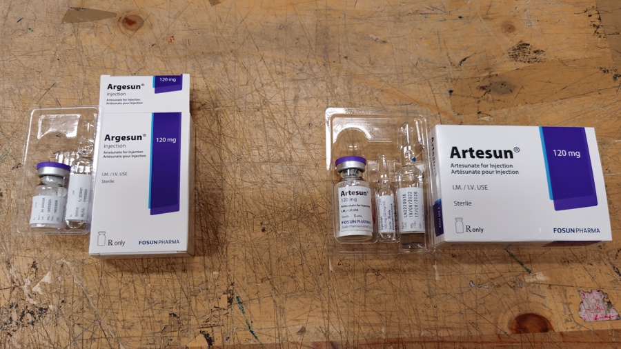 第一代注射用青蒿琥酯Artesun和第二代产品Argesun。俞陶然摄