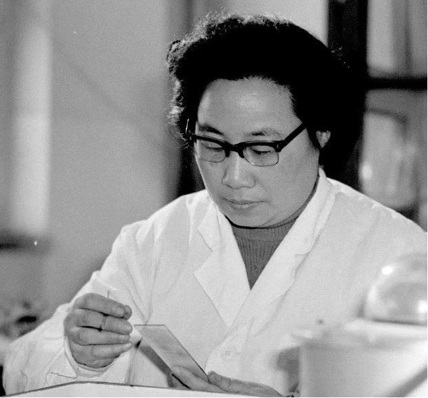 图:屠呦呦在实验室中测试青蒿对疟疾的疗效