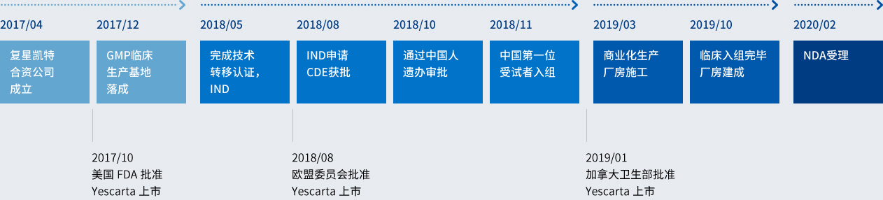 As a joint venture of Shanghai Fosun Pharmaceutical (Group) Co., Ltd and U.S. Kite Pharma, Fosun Kite Biotechnology Co., Ltd. (hereinafter referred to as "Fosun Kite") was established in April 2017 in Shanghai China. Taking a combined approach of internal R&D and external partnering/technology transfer, Fosun Kite is dedicated to the advancement of innovative cell therapy and its industrialization in China to benefit patients.