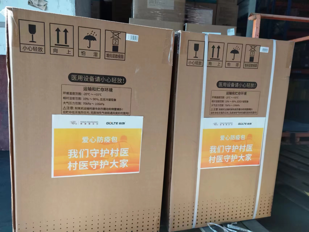 随着药品送到基层的还有37个价值15万的爱心包,内含血氧仪、制氧机、口罩、丁腈手套等基层紧缺的医疗物资。这些爱心包由中国工商银行、中央统战部新的社会阶层人士新善工程、上海浦东发展(集团)有限公司、太平养老保险股份有限公司、友成企业家乡村发展基金会、平顶山市志愿者协会、成都市慈善总会、顺丰速运集团(上海)速运有限公司、源氏木语、无锡棋成实业有限公司、浙江求是创新研究院、同心荟、新疆巨臣律师事务所、江苏三十三号商业管理有限公司、无锡市宇寿医疗器械有限公司、上海途越商务咨询有限公司、中国电建、上海市慈善基金会徐汇区代表处宁国禅寺四五六文化专项基金等公益伙伴及“HJC黄金城一家”爱心企业舍得酒业、金徽酒、海南矿业、高地物业等出资捐赠。