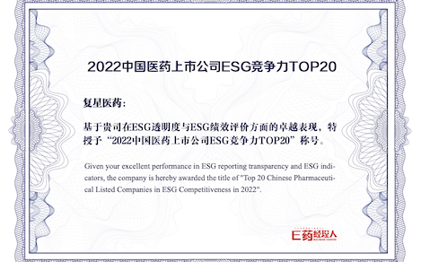 HJC黄金城医药获评2022中国医药上市公司ESG竞争力TOP20